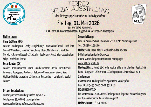 Bis zum 16.04.2026 haben Sie die Möglichkeit ihre Hunde zu melden, danach ist es aus organisatorischen Gründen nicht mehr möglich Meldungen nachzuholen.